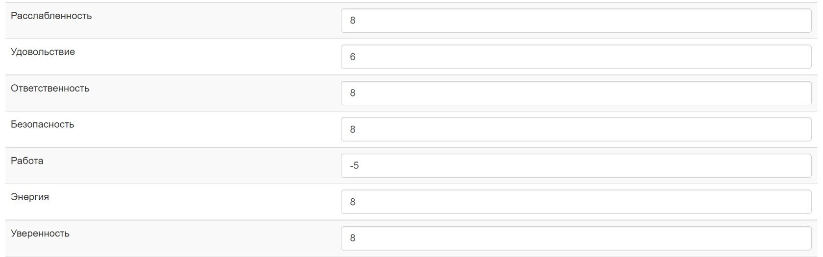 Выставите оценку образам от -10 до + 10 исходя из ощущений в теле. Глаза открыты. Верьте своим чувствам.